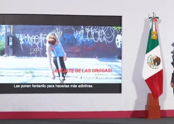 La presidenta Claudia Sheinbaum Pardo presenta esta mañana la campaña "Aléjate de las drogas. El fentanilo mata",...