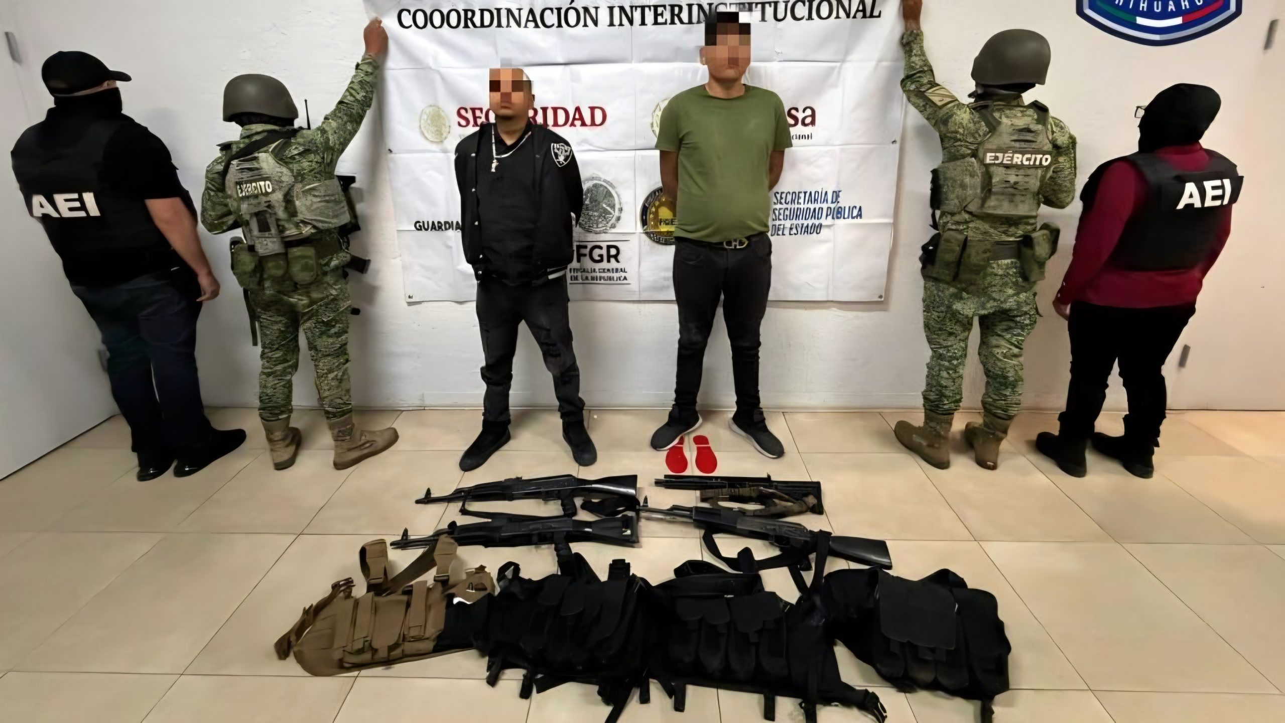 En el inmueble intervenido, las autoridades detuvieron a dos sujetos identificados como Luis Manuel L.H. y José Daniel S.N., de 21 y 25 años de edad, a quienes se les aseguró lo siguiente: