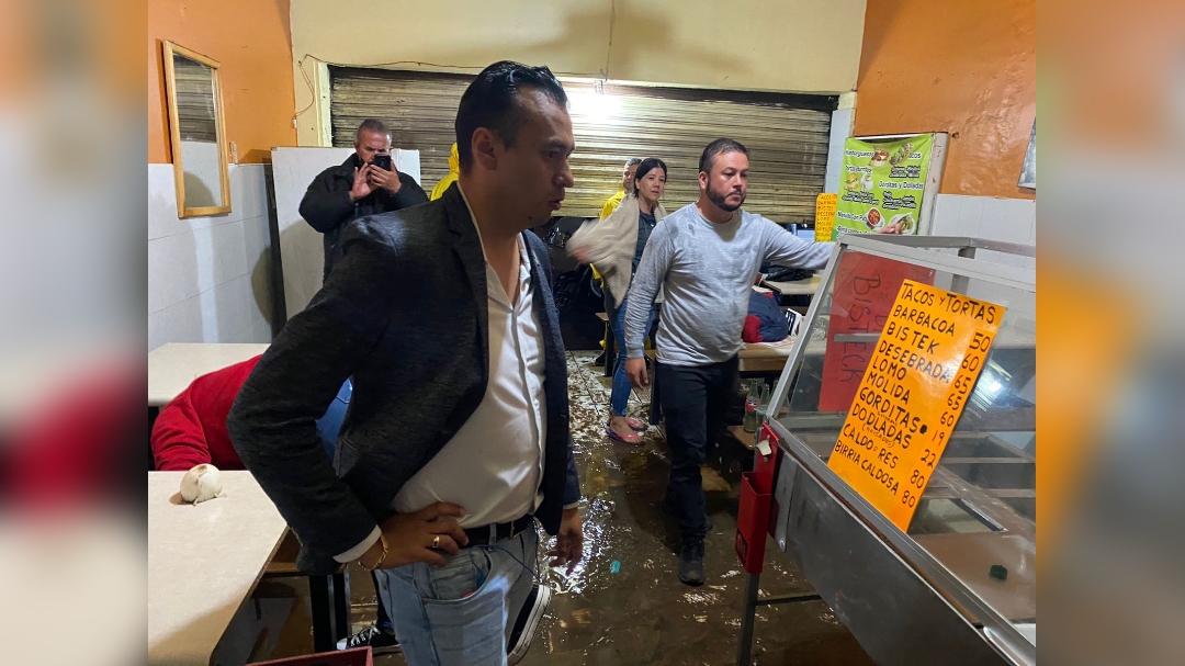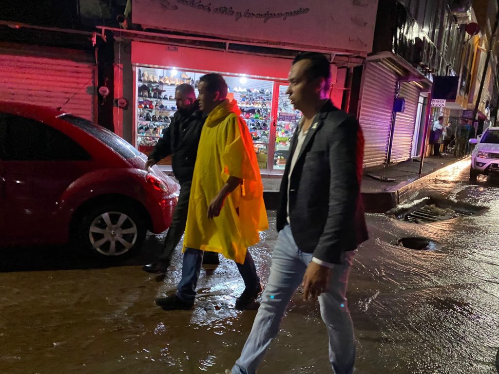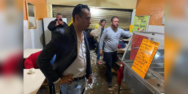 Acompañado por elementos de la Unidad de Protección Civil y Bomberos, así como de agentes de Policía y Vialidad, y la Cruz Roja, el munícipe recorrió la importante zona económica que resultó afectada por el temporal lluvioso, señalando que los negocios que reportaron más estragos fueron un restaurante, una carnicería y algunas tiendas de ropa.