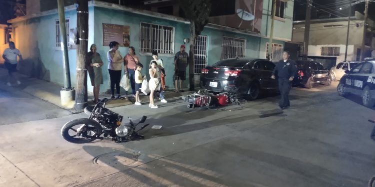 Un encontronazo frontal entre dos motocicletas en la colonia Emiliano Zapata dejó como saldo dos hombres lesionados, uno de ellos de gravedad, según información preliminar.