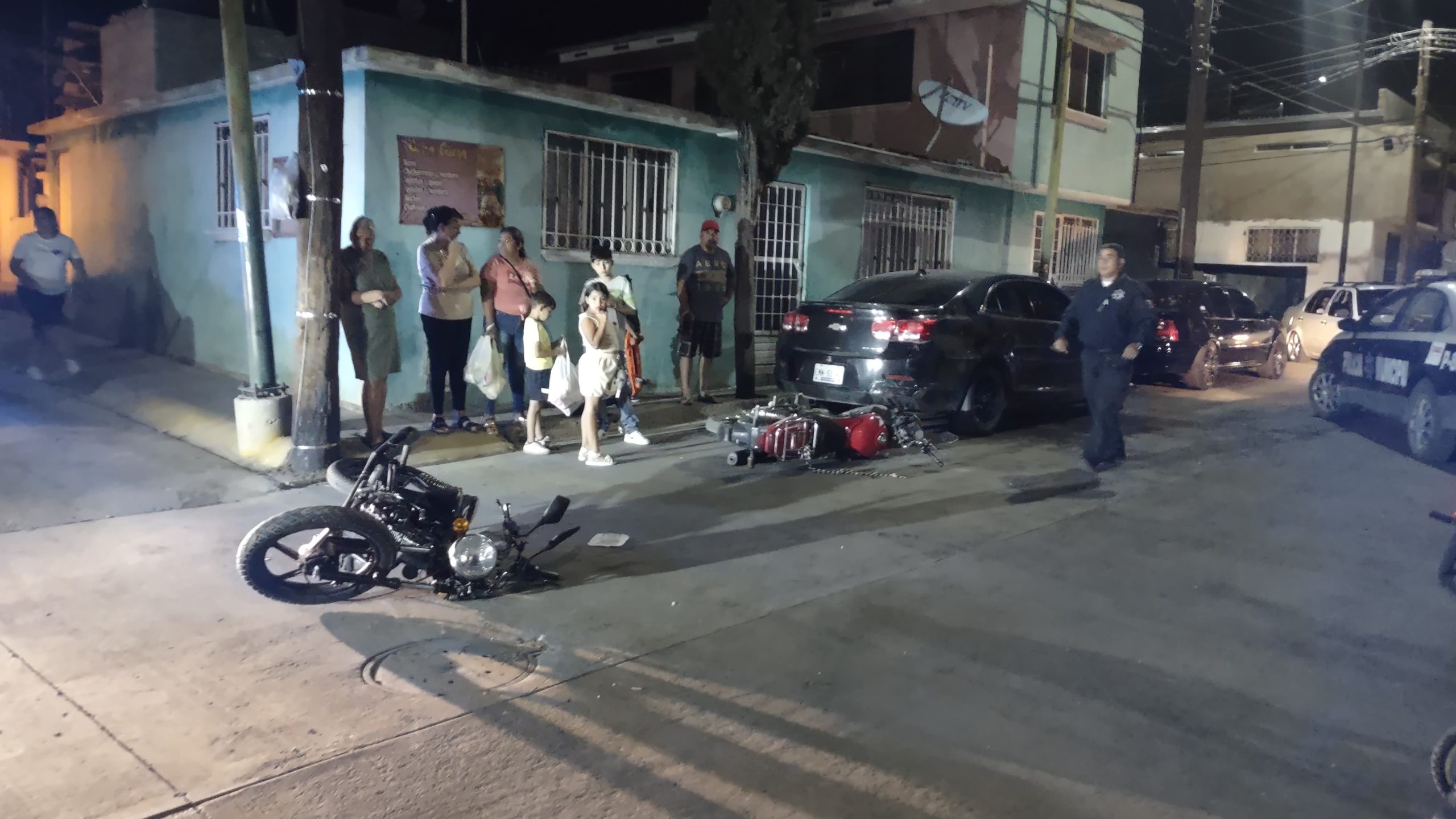 Un encontronazo frontal entre dos motocicletas en la colonia Emiliano Zapata dejó como saldo dos hombres lesionados, uno de ellos de gravedad, según información preliminar.