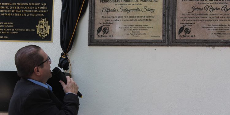 El presidente Municipal de Parral, Salvador Calderón, encabezó la ceremonia de develación de placas conmemorativas en honor a tres destacados periodistas locales: Alfredo Salayandia, Jaime Nájera y José Luis Reyes, en un acto de reconocimiento a su amplia trayectoria, compromiso informativo y entrega al servicio público.