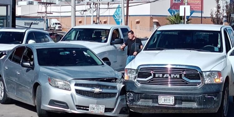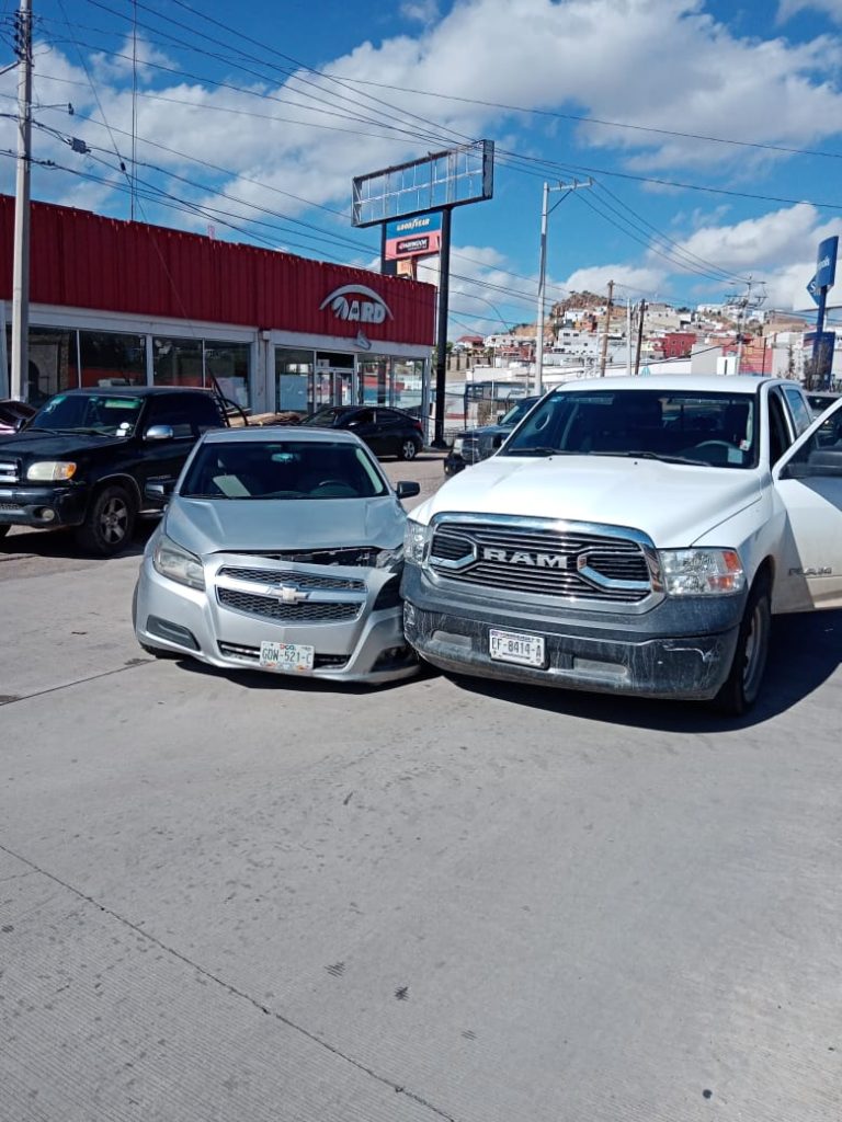 A las 2 de la tarde de este viernes, se registró un choque entre un vehículo y una camioneta frente al panteón de Dolores que dejó como saldo cuantiosos daños materiales.
