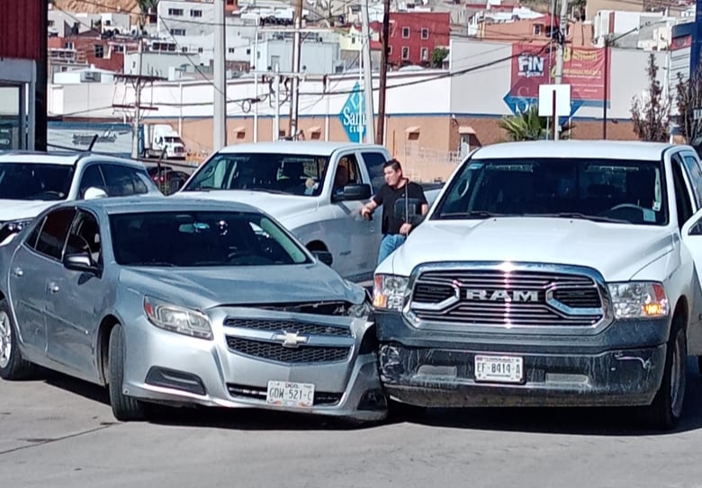 A las 2 de la tarde de este viernes, se registró un choque entre un vehículo y una camioneta frente al panteón de Dolores que dejó como saldo cuantiosos daños materiales.