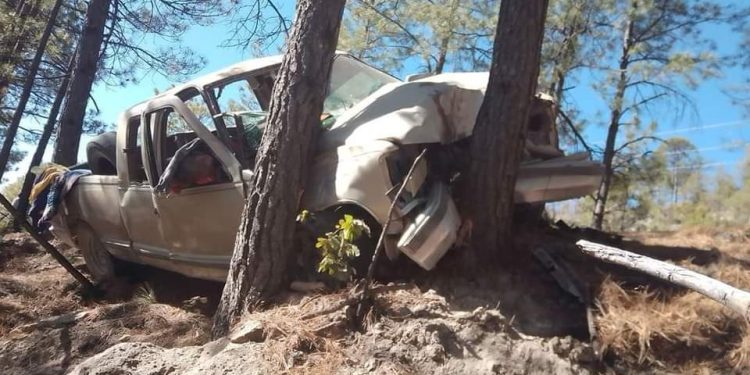 Una camioenta terminó su trayectoria al impactarse contra un pino sobre la carretera que conduce de Creel a Cusárare, dejando como saldo fatal dos personas sin vida, pero además, 8 lesionados, entre ellos, un bebé menor a 2 años y otros menores de edad.