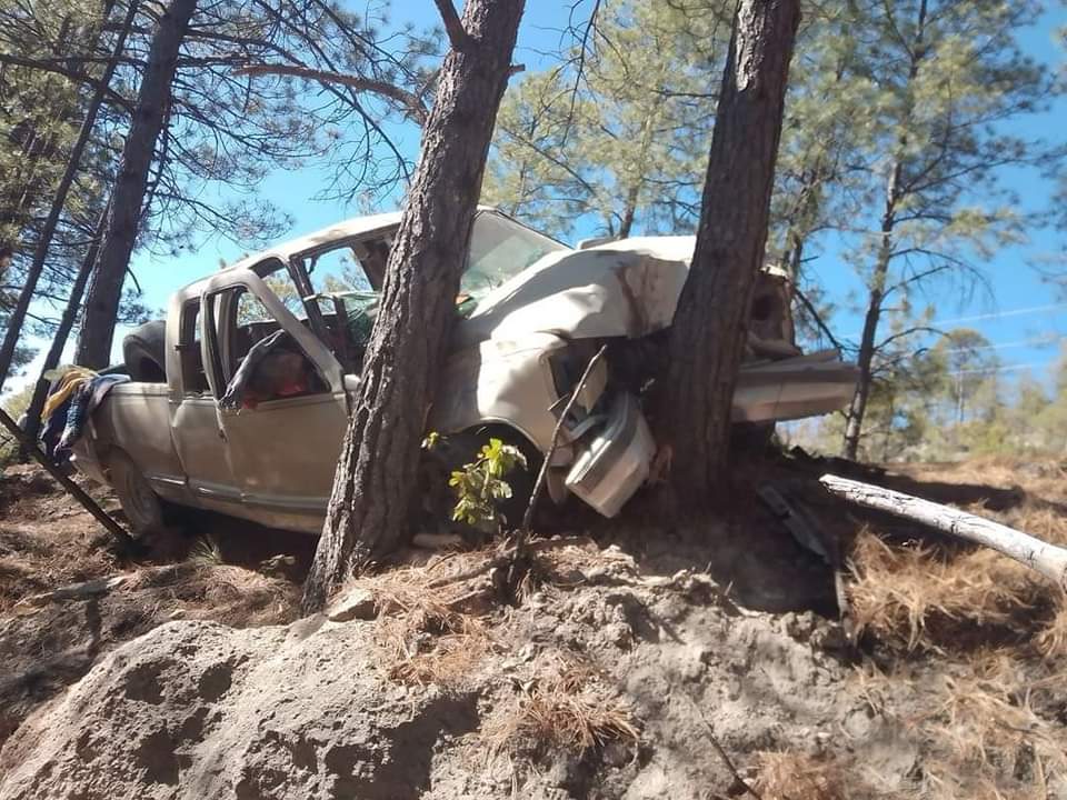 Una camioenta terminó su trayectoria al impactarse contra un pino sobre la carretera que conduce de Creel a Cusárare, dejando como saldo fatal dos personas sin vida, pero además, 8 lesionados, entre ellos, un bebé menor a 2 años y otros menores de edad.