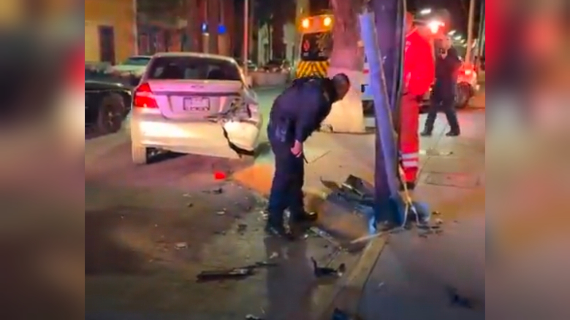 De acuerdo con los primeros datos recabados, el conductor de un automóvil que descendía por la avenida perdió el control, salió de su carril e impactó de lleno contra un Chevrolet Aveo, color plateado, modelo aproximado 2010, que se encontraba debidamente estacionado. En su trayectoria también derribó un poste, incrementando los daños materiales.