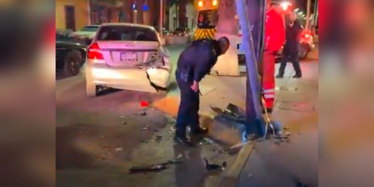 De acuerdo con los primeros datos recabados, el conductor de un automóvil que descendía por la avenida perdió el control, salió de su carril e impactó de lleno contra un Chevrolet Aveo, color plateado, modelo aproximado 2010, que se encontraba debidamente estacionado. En su trayectoria también derribó un poste, incrementando los daños materiales.