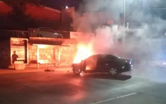 Rápidamente los bomberos procedieron a realizar maniobras de enfriamiento y sofocación del compartimiento del motor e interior del auto, quedando controlada la situación.