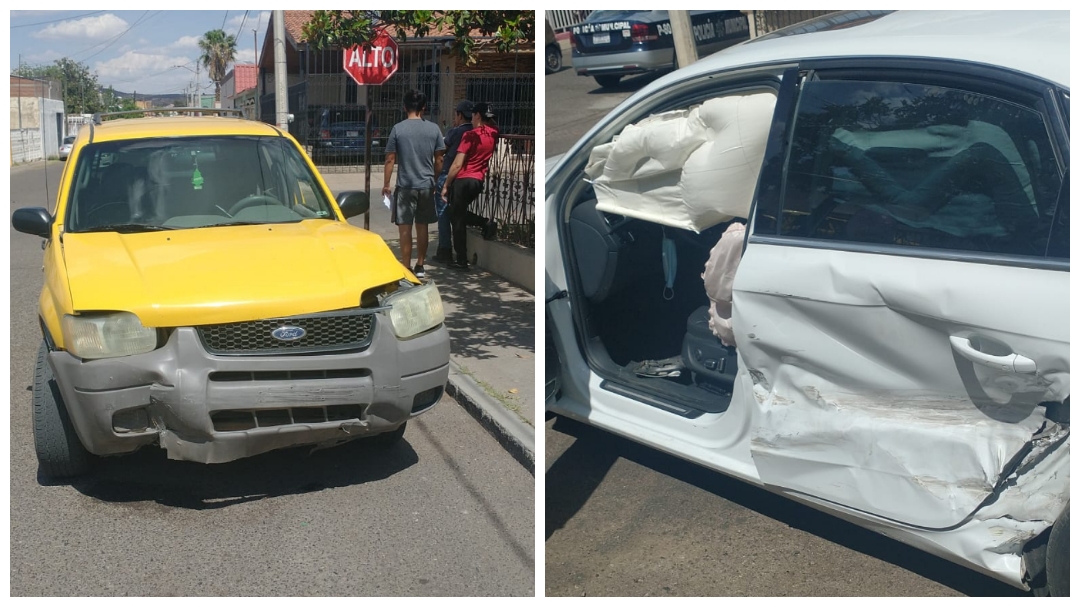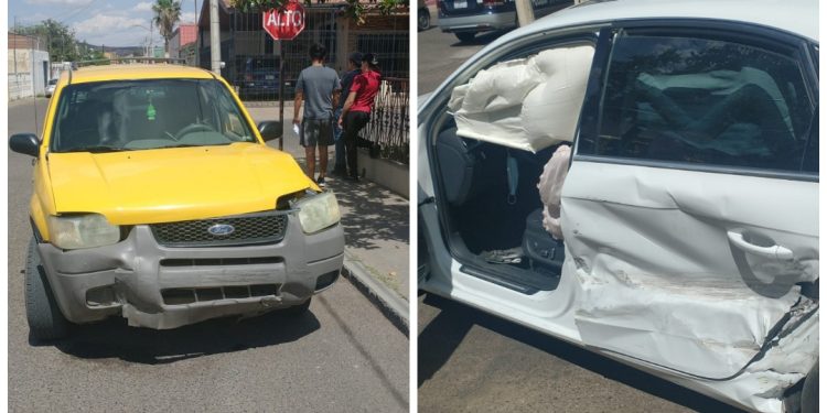Un aparatoso choque tuvo lugar en la intersección de las calles Francisco Sarabia y Quinta, dejando como saldo cuantiosos daños materiales y a uno de los tripulantes lesionados.