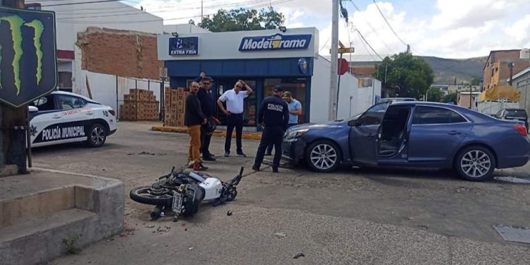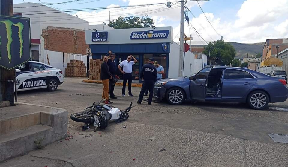 Un motociclista resultó lesionado tras chocar contra un vehículo en la calle Ocampo, cruce con Rivera Del Ojito, durante la mañana de este domingo.