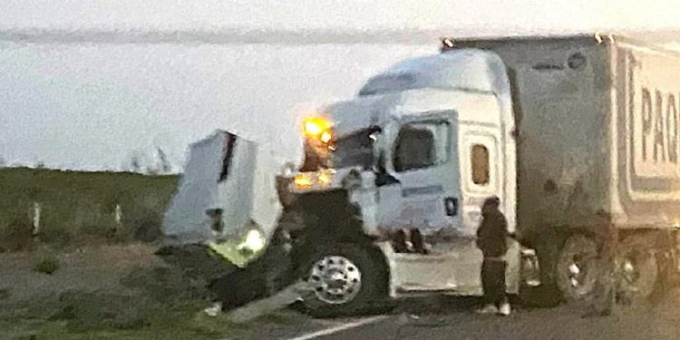 El incidente ocurrió alrededor de las 6:00 de la mañana, involucrando un autobús de la Línea “Fronteras” y un tractocamión de paquetería, éste último, impactó al de pasajeros, provocando que saliera de la cinta asfáltica.