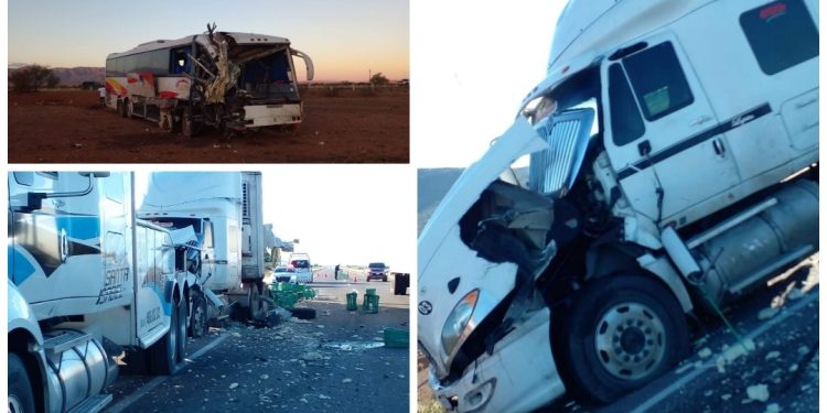 Un saldo preliminar de cinco personas lesionadas es el que dejó un impacto entre un camión de pasajeros y un tráiler sobre la carretera vía corta a Chihuahua.