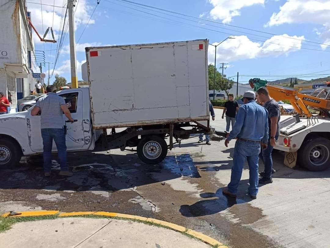 Cerca de las 12:00 horas fue reportado al 911 un choque fuga en el cruce de la Avenida Tecnológico y calle Ingenierías por una pick up Nissan con caja de refrigeración que omitió su respectiva alto y le cerró el paso a otra camioneta Nissan, pero línea Frontier, de color blanco, provocando el impacto entre ambas.