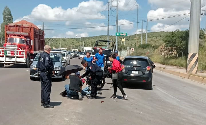 Fue necesaria la presencia de paramédicos de Cruz Roja, quienes atendieron al motociclista brindándole los primeros auxilios, toda vez que refería dolor en ambas piernas y debió ser trasladado a un hospital, desconociéndose hasta el momento la gravedad de sus heridas.