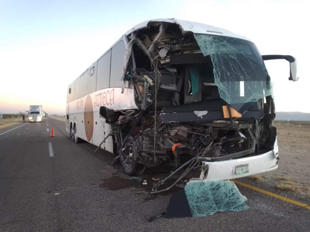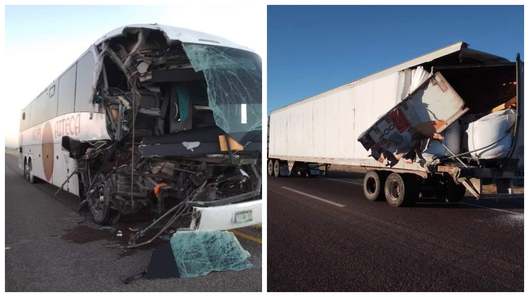 Un autobús con 19 pasajeros provenientes de Los Ángeles, California, cuyo destino era el estado de Zacatecas, se impactó contra un camión de carga sobre la carretera de cuota que comunica Jiménez con Camargo.