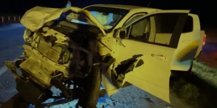 Uno de los vehículos involucrados es una pick up Chevrolet Colorado, color blanco, doble cabina y placas del estado de Arizona 20AOFJ.