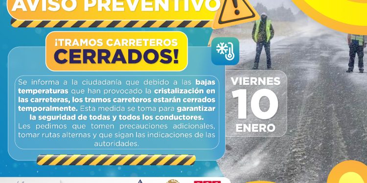El Gobierno de Parral anunció que el tramo carretero Parral-Vía Corta a Chihuahua se encuentra cerrado ante la caída de nieve, por lo que exhortan a la ciudadanía atender las recomendaciones emitidas por las autoridades.
