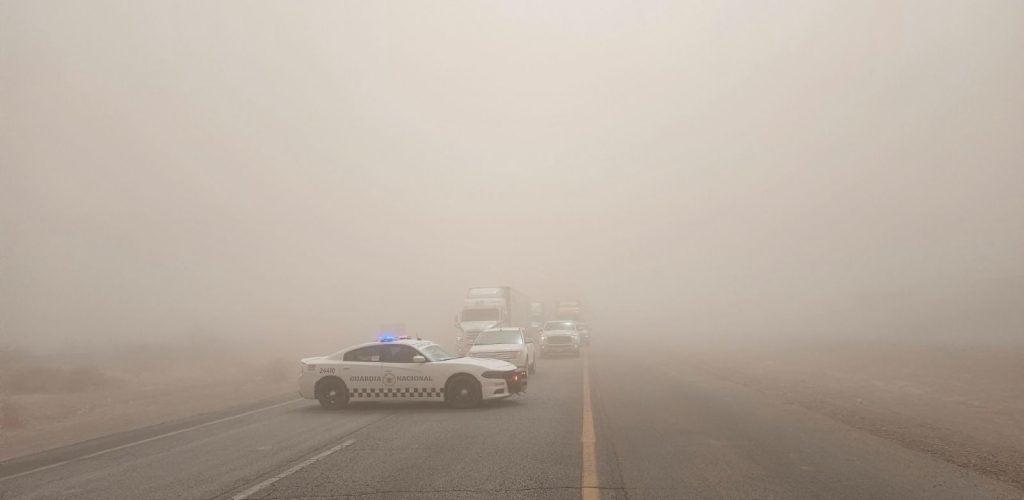 La nula visibilidad generada por una tormenta de arena en la región del municipio de Ahumada, derivó esta tarde en el cierre en ambos sentidos de la carretera Panamericana, por autoridades de la Guardia Nacional.