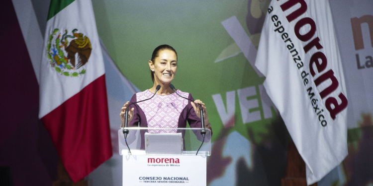 Con un tono pausado, que a veces recuerda el de su mentor, Sheinbaum ha dedicado prácticamente la totalidad de sus 30 minutos de discurso a los logros del presidente. “Vivimos un momento extraordinario, son casi cinco años del gobierno de López Obrador. México ha cambiado profundamente, para bien, en lo económico, en lo político, en lo social, pero también, en la consolidación de una nueva forma de pensamiento”; ha dicho. “La máxima es erradicar la corrupción y los privilegios, no solo es ético, funciona y da resultados. Ah, y también se ha logrado la disminución de índices delictivos. No lo dicen los medios, pero es una realidad. Se fortalece una forma de gobernar, cercana al pueblo, que no reprime, que respeta la libertad de expresión”.