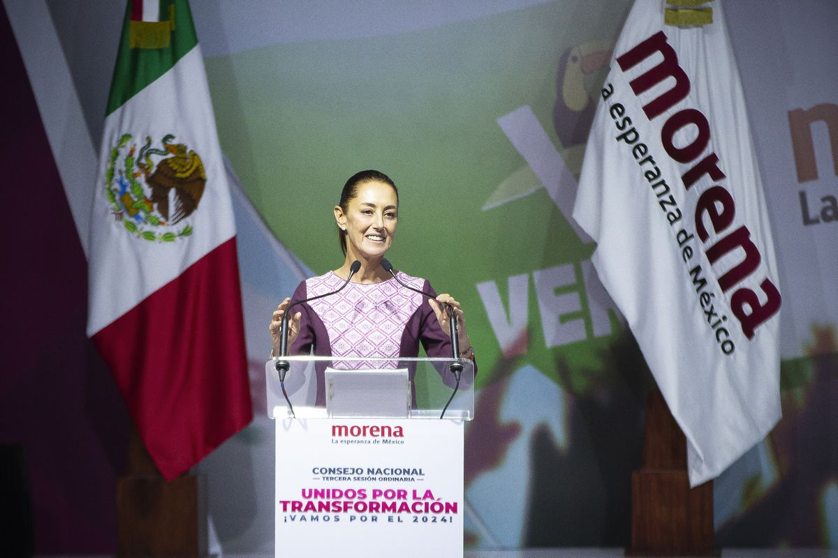 Con un tono pausado, que a veces recuerda el de su mentor, Sheinbaum ha dedicado prácticamente la totalidad de sus 30 minutos de discurso a los logros del presidente. “Vivimos un momento extraordinario, son casi cinco años del gobierno de López Obrador. México ha cambiado profundamente, para bien, en lo económico, en lo político, en lo social, pero también, en la consolidación de una nueva forma de pensamiento”; ha dicho. “La máxima es erradicar la corrupción y los privilegios, no solo es ético, funciona y da resultados. Ah, y también se ha logrado la disminución de índices delictivos. No lo dicen los medios, pero es una realidad. Se fortalece una forma de gobernar, cercana al pueblo, que no reprime, que respeta la libertad de expresión”.