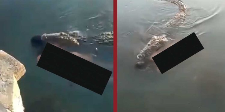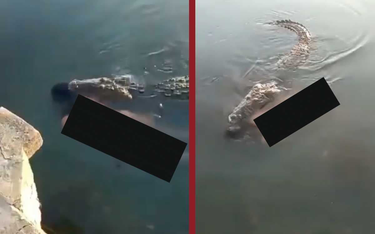 El ejemplar fue captado en la Laguna del Carpintero mientras escondía el cuerpo de su víctima, un hombre que solo vestía playera negra y calcetines.