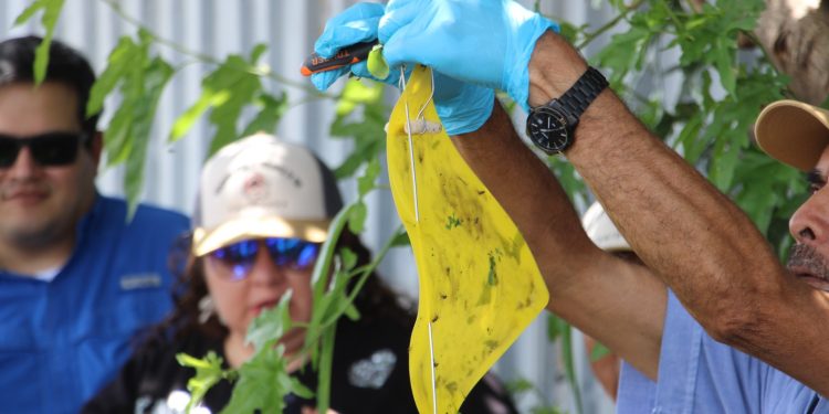 Los dispositivos fueron donados por el Servicio Nacional de Sanidad, Inocuidad y Calidad Agroalimentaria (Senasica) y consisten en la colocación de un banderín amarillo, impregnado con adhesivo y dos componentes atrayentes que permiten captar la presencia del insecto.