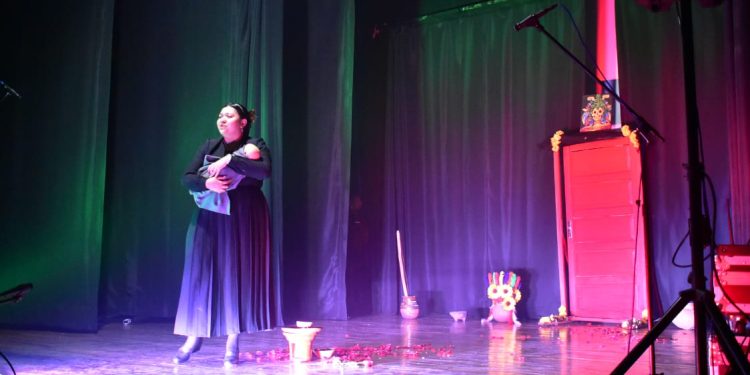 Con 12 actores en escena, la escritora Blanca López Arzola, la responsable de idea creativa, Elena Gutierrez Sáenz y el sonorista, Leobardo Rodríguez, deleitaron al público amante del arte histriónico con una obra que hizo paralelismo con La divina comedia de Dante Alighieri, pero narrando la historia de México.