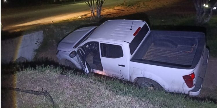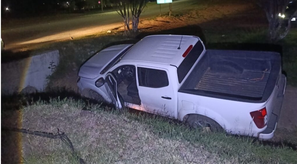 El incidente ocurrió alrededor de las 4:20 de la mañana, cuando el sistema de emergencias 911 recibió el reporte de una salida de camino. Al llegar al lugar, elementos de Tránsito Municipal encontraron una pickup Nissan NP300 blanca, modelo 2023, varada dentro de un pequeño canal de aguas.