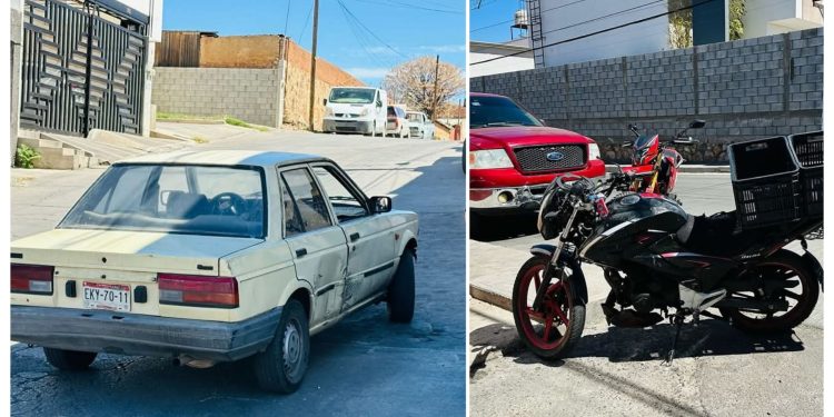 La impericia ocasionó que una motocicleta marca Italika, color negra con rojo que bajaba la calle Venezuela, chocara contra el automóvil al no alcanzar a frenar, impactándolo sobre la puerta derecha.