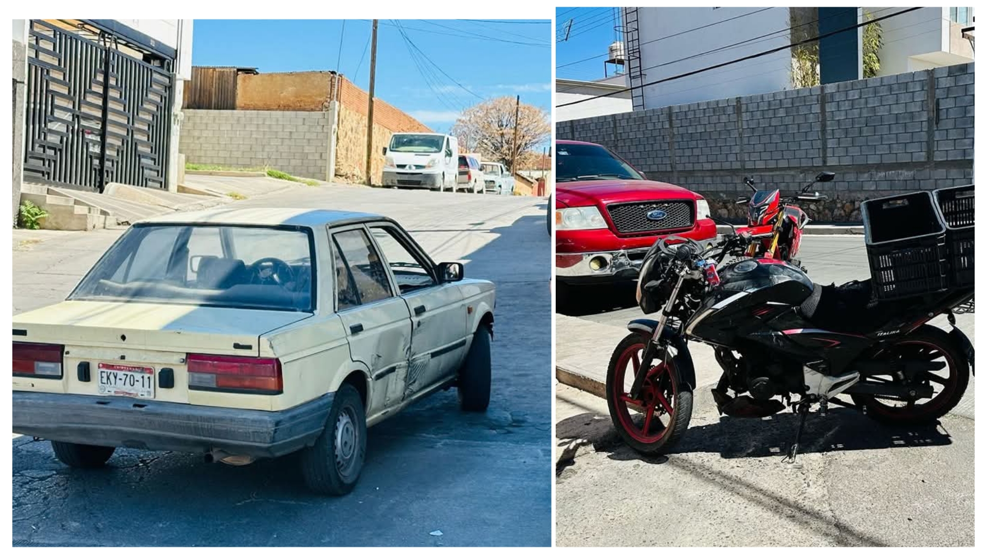 El conductor de un Nissan Tsuru de modelo atradaso le cortó el paso a un motociclista que circulaba cerca de él, provocando una colisión en la calle Venezuela.