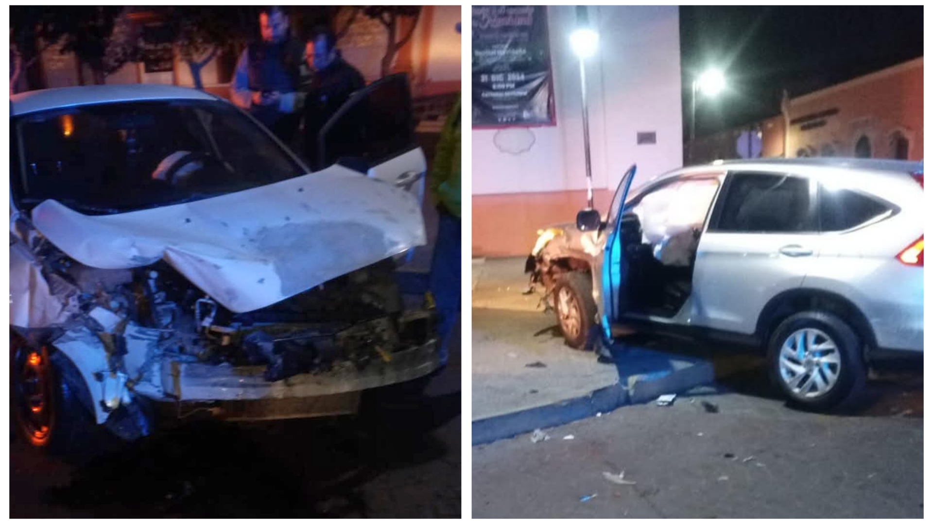 El accidente ocurrió minutos después de las 11:00 de la noche del sábado, dejando como saldo una persona lesionada de gravedad, además de cuantiosos daños materiales en ambas unidades.