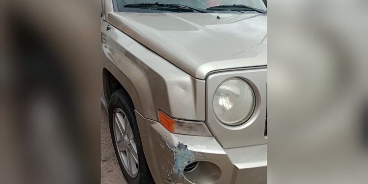 El vehículo impactó contra una camioneta Jeep Patriot, modelo 2010, color dorada, manejada por Angélica L. S..