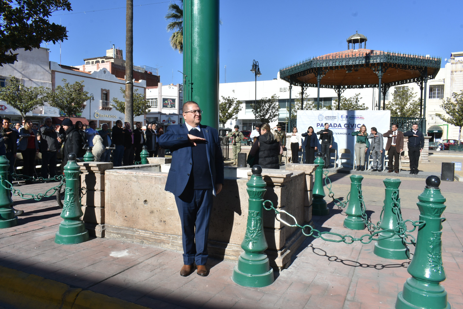 «Hoy recordamos un hecho fundamental en la historia de nuestro país: la promulgación de la Constitución de 1917, documento que nos guía hasta el día de hoy, garantizando nuestros derechos y estableciendo las reglas con las que vivimos en sociedad», expresó el alcalde de Parral, Chava Calderón, en la Plaza de Armas.