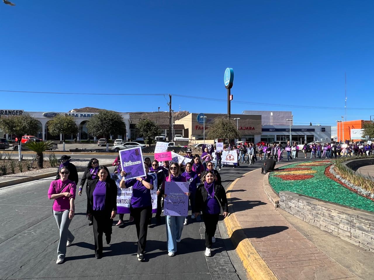 El contingente partió de la plaza Marisela Escobedo con destino a la glorieta Ortiz Mena y Avenida Independencia, para culminar en la Plaza Principal, lugar en donde las mujeres pudieron tomar el micrófono y manifestarse.