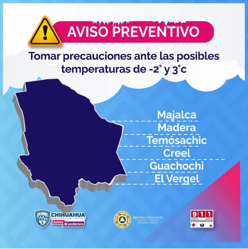 La Coordinación Estatal de Protección Civil dio a conocer que durante esta semana se espera el descenso en las temperaturas en gran parte de Chihuahua, mientras que continúa el pronóstico de lluvias en distintas zonas de territorio