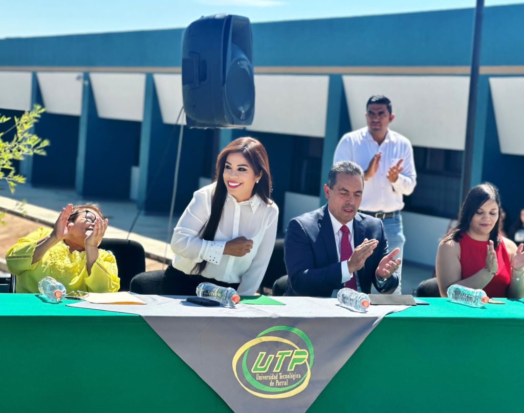 La rectora de la UTP, Betty Chávez Mata, encabezó la festividad en la que se honró al lábaro patrio y se partió el pastel conmemorativo por la fecha onomástica, escoltada por la recaudadora de Rentas, Carmen Margarita Cano Villegas, en representación de la gobernadora del Estado, Maru Campos Galván; y el presidente municipal, César Alberto Peña Valles, entre otros invitados especiales.