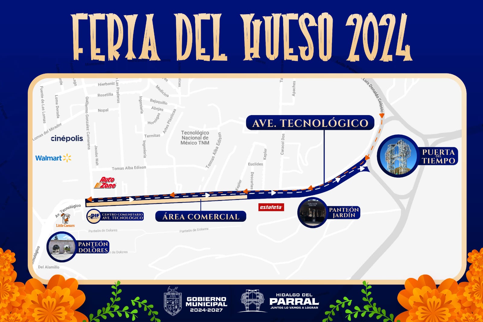 El Gobierno de Parral da a conocer el Operativo Vial que se mantendrá vigente durante la “Feria del Hueso”, donde los carriles de ascenso de avenida Tecnológico serán cerrados para uso comercial y los de Puerta del Tiempo a Independencia serán habilitados en ambos dos sentidos.