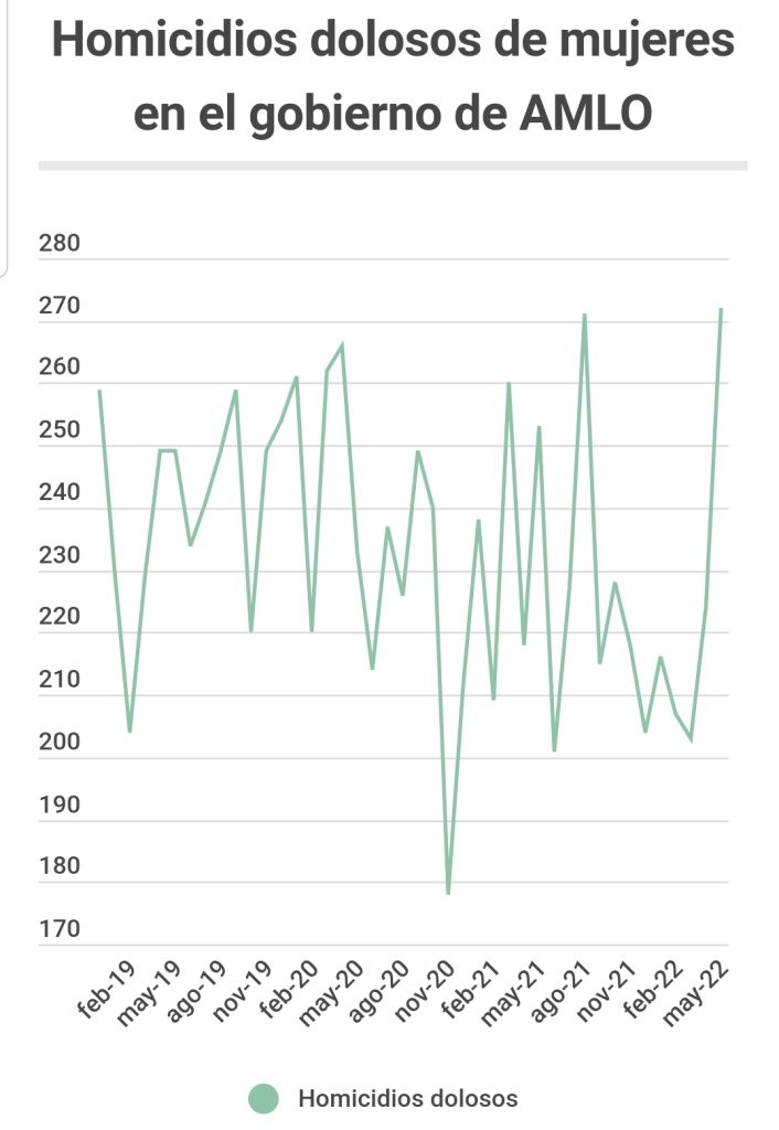 Las muertes violentas de mujeres rompieron récord. En el quinto mes del año, se reportaron 272 víctimas, con lo que se superó los 271 eventos ocurridos en agosto de 2021, de acuerdo con el último reporte del Secretariado Ejecutivo del Sistema Nacional de Seguridad Pública (SESNSP).