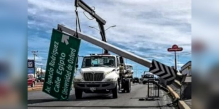 El señalamiento quedó en un camellón que divide los carriles principales y la lateral en el Periférico de la Juventud, justo a la altura de la avenida Abolición de la Esclavitud.