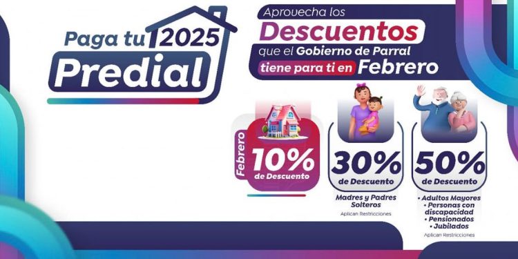 El Gobierno de Parral invita a la ciudadanía a aprovechar el 10 por ciento de descuento en el pago del Impuesto Predial que estará vigente hasta el 28 de febrero, aplicable a personas físicas y morales.