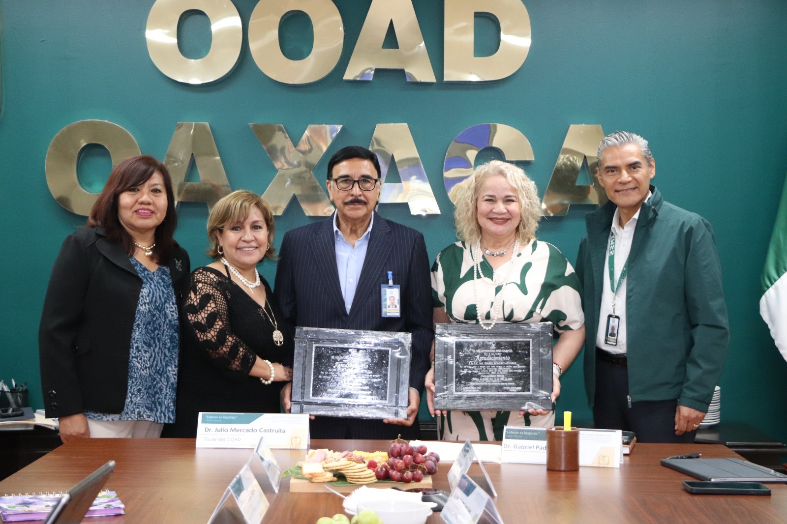 Igualmente, el Cuerpo de Gobierno delegacional del IMSS de Oaxaca reconoció el liderazgo, el compromiso institucional y la profunda vocación de servicio al frente de la institución. “Deja una huella imborrable al fortalecer la infraestructura de salud, garantizar la cobertura y atención continúa, sustanciales en el avance en la seguridad, a través de la transformación de los servicios, profesionalización del personal y la estrecha vinculación con el cuerpo delegacional”, destaca el reconocimiento.