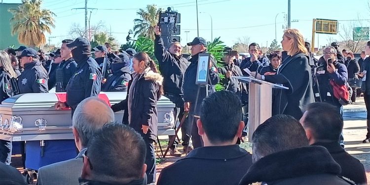 La ceremonia de despedida se llevó a cabo en la explanada de la Asta Bandera del parque El Chamizal, encabezada por la Gobernadora Constitucional del Estado de Chihuahua, Maru Campos y el Fiscal General del Estado, Roberto Javier Fierro Duarte.
