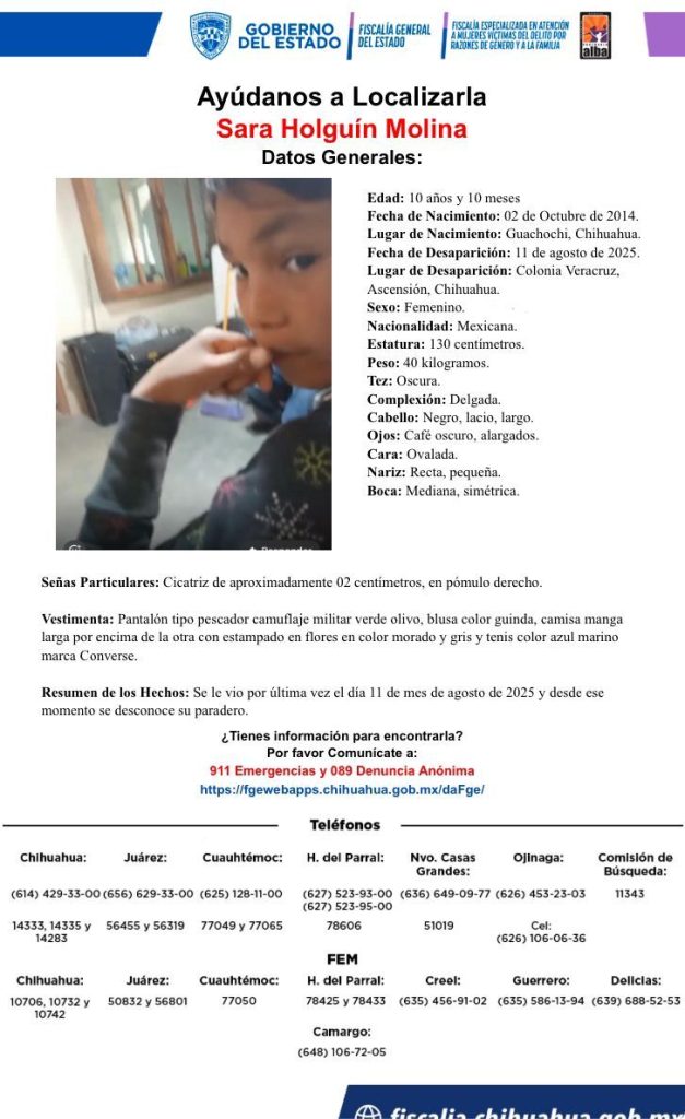 En seguimiento a las investigaciones para dar con el paradero de dos menores de edad, no localizados desde el pasado lunes 11 de agosto, en el municipio de Ascensión, elementos de la Agencia Estatal de Investigación, en coordinación con Ministerios Públicos de la Fiscalía de Distrito Zona Noroeste, desplegaron un operativo de búsqueda y rastreo en diversos ranchos y poblados de la región.