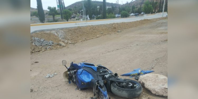 Agentes de Vialidad tomaron nota del hecho en el que Adrián Lorenzo R.CH., al viajar en una motocicleta Suzuki de color azul modelo 2015, ignoró la desviación instalada en el lugar por motivo de la obra en proceso, a grado tal que terminó impactándose contra un montículo de piedra.