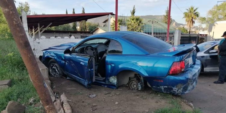 La mañana de este sábado, alrededor de las 7:00 horas, se reportó al sistema de emergencias 911 sobre un choque contra objeto fijo, cuando el conductor de un Ford Mustang color azul lo destrozó luego de chocar contra un poste y una pequeña barda en la Avenida Tecnológico.