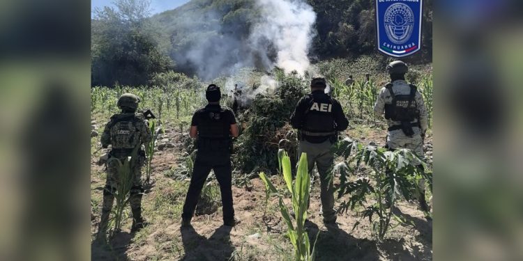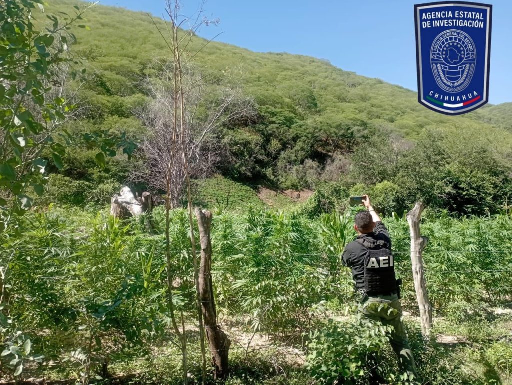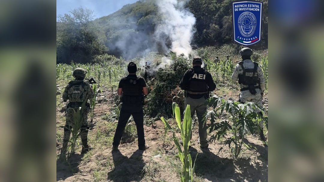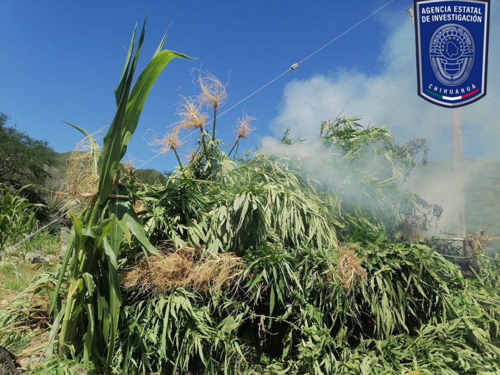 Como parte de los trabajos de seguridad y combate frontal de los delitos, elementos de la Agencia Estatal de Investigación que participan en el Operativo Conjunto desplegado en el municipio de Guadalupe y Calvo, localizaron y destruyeron cinco plantíos de marihuana.