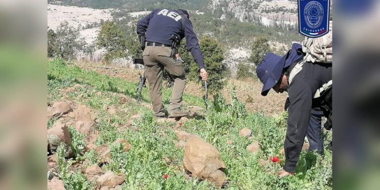 En atención a una denuncia ciudadana, los elementos de seguridad que integran las Células B.O.I., localizaron y destruyeron dos plantíos en los que se contabilizaron más de 70 mil plantas de amapola en el municipio de Guadalupe y Calvo .