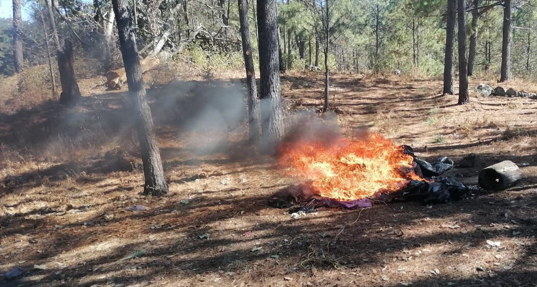 Como resultado de los trabajos de seguridad implementados por las Bases de Operación Interinstitucional (BOI) en el municipio de Guadalupe y Calvo, fueron localizados diversos campamentos y objetos de interés criminalístico.