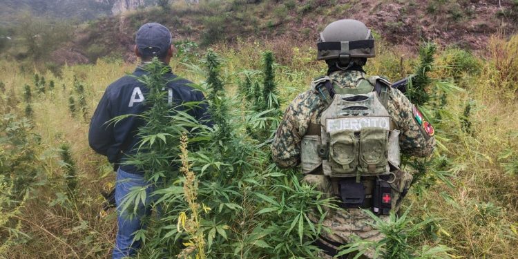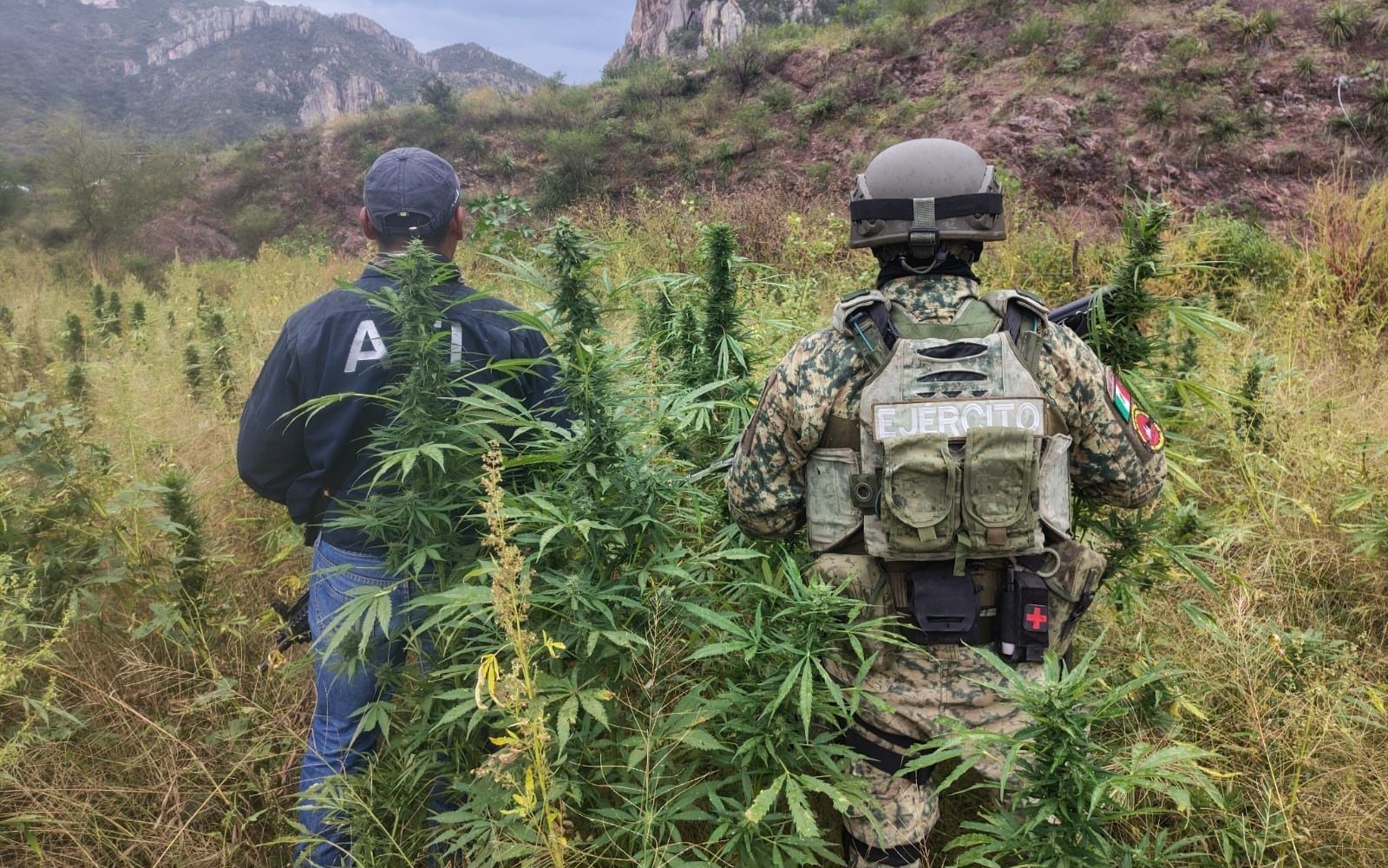 En un operativo conjunto, elementos de la Agencia Estatal de Investigación y del Ejército Mexicano, destruyeron tres plantíos de mariguana, en el lugar conocido como Cañón de los Remedios, municipio de Ocampo.